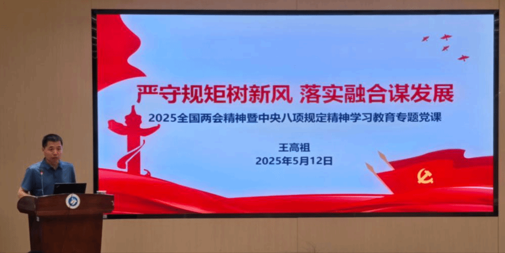 4月27日,爱爱视频 开展深入贯彻中央八项规定精神学习教育专题党课,党委书记王高祖以《严守规矩树新风 落实融合谋发展》为题,为学院领导班子、支部书记、支委讲授专题党课。