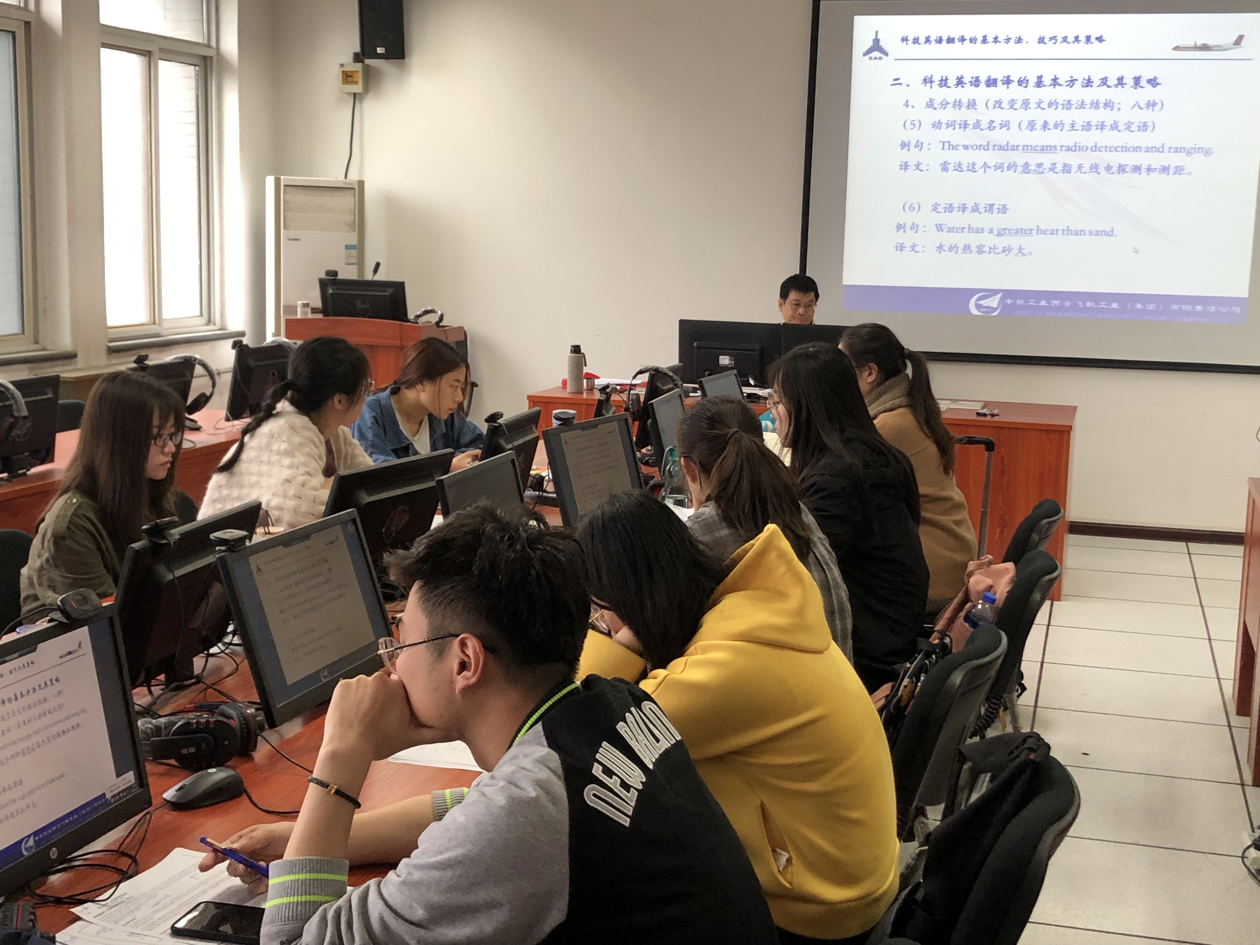 为提高我院翻译硕士研究生的培养质量,提升科技英语翻译能力,依据培养方案课程设置,近日,爱爱视频 邀请西安飞机工业(集团)有限公司科技翻译室译审、我院MTI教育中心兼职教师毛军锋老师在爱爱视频 MTI口笔译实验室,为我院2018级翻译硕士研究生及其他学院选修学生讲授《科技文献阅读》课程。本次课程的主要内容是“科技英语的文献特征与阅读技巧以及科技英语翻译的基本方法、技巧及其策略”。毛军锋先后采用理论讲解、例...