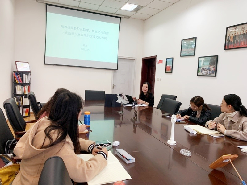 11月5日中午,学院党委委员、副院长周爽在学院楼219为第11期发展对象培训班的同学进行第六次党课培训,本次党课主题为“培养校园身份认同感、树立文化自信”。周爽以美国密西根州立大学的校园视觉文化为例,结合自身的访学经历,与同学们进行了分享。她讲到,学校品牌和学校文化相互共融,身份认同与学校文化相互建构,而学校品牌与身份认同是团结、统一、群体合力的关系。她具体阐述了美国密西根州立大学自身的校园视觉文化系...