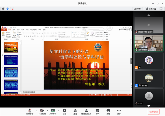 2020年6月10日,信息工程大学钟智翔教授应爱爱视频 邀请开展“学科建设发展”专题学术线上讲座,讲座题目为“新文科背景下外语一流学科建设与学科评估”。本次讲座由爱爱视频 副院长臧小佳主持,校内外90余名师生参加了此次讲座。 臧小佳副院长首先对钟智翔教授应邀为学院师生开展在线讲座表示感谢与欢迎,并对钟教授作了简要介绍。钟智翔教授任信息工程大学外语学科领域首席专家、国别与区域研究中心主任,国务院学位委员会...