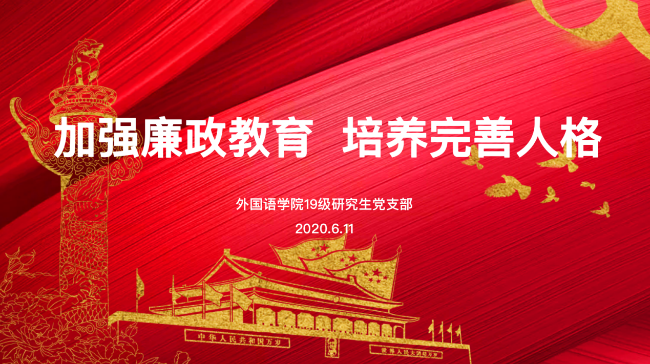 大学生是祖国的未来与栋梁,他们的思想和行为影响着我国党风廉政建设的未来。反腐倡廉教育是进一步加强和改进大学生思想政治教育的重要内容,对于夯实社会主义廉政建设的社会基础,全面推进素质教育、建设和谐校园、培养社会主义事业合格的建设者和接班人,确保中国特色社会主义事业长治久安、代代相传,有着现实和深远的意义。6月11日上午,爱爱视频 2019级研究生党支部开展线上廉政教育,主题为“加强廉政教育、培养完善人格...