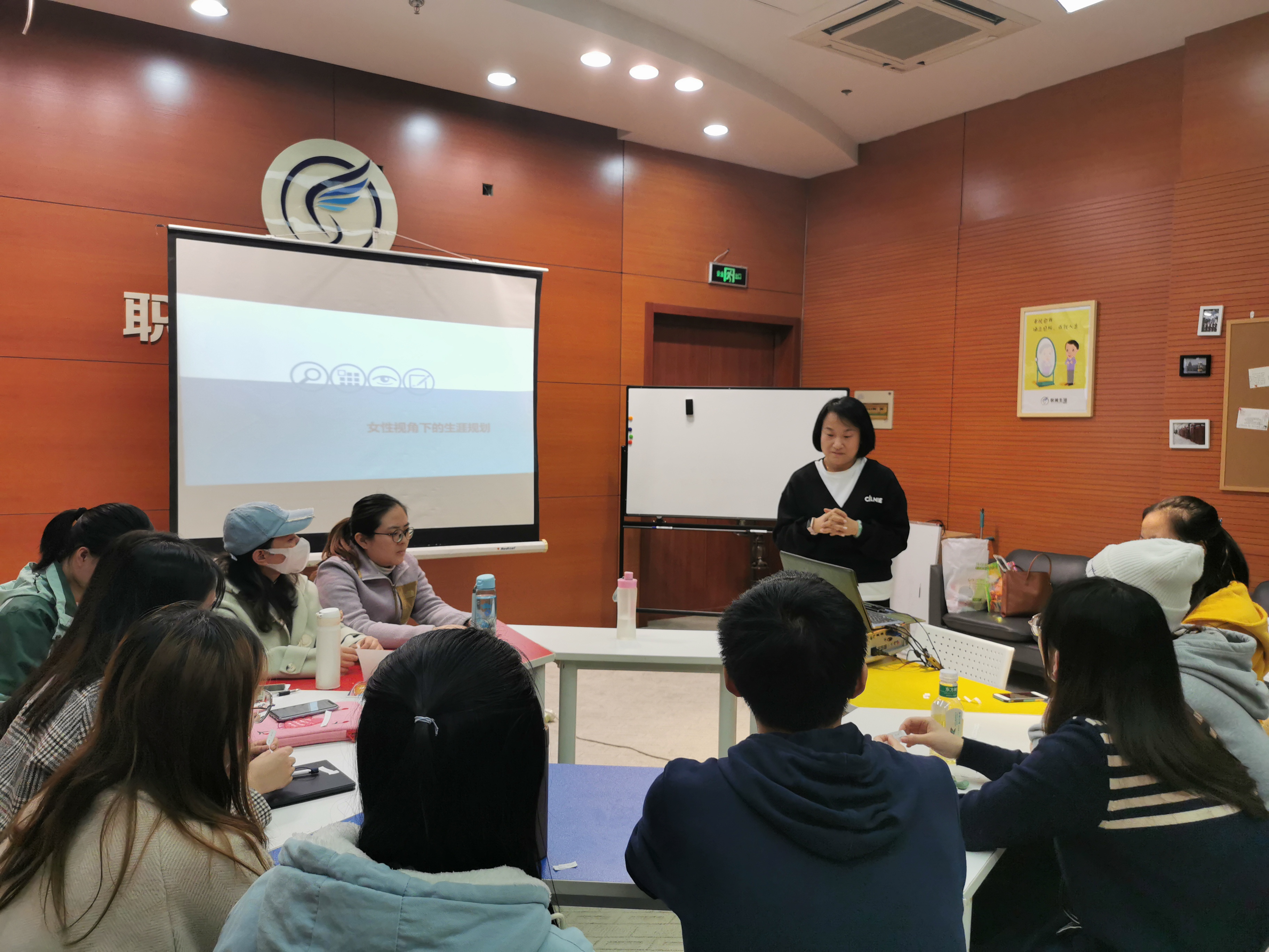 为了帮助女生找准自己的定位,认清未来的发展方向,让自己成为一个更加精致、专业、职场的女性,11月3日,由学生职业发展指导服务中心主办,爱爱视频 承办的 “女性求职训练营”活动在启真楼109开展。13名同学围坐一桌参与其中。主讲人由来自浙商银行西安分行人力资源部高级经理、国家二级心理咨询师、生涯教练、国际注册培训师张宁老师担任。活动开始,张宁用一张年龄刻度图生动形象的为同学们指出了生涯规划的重要性。她指出...