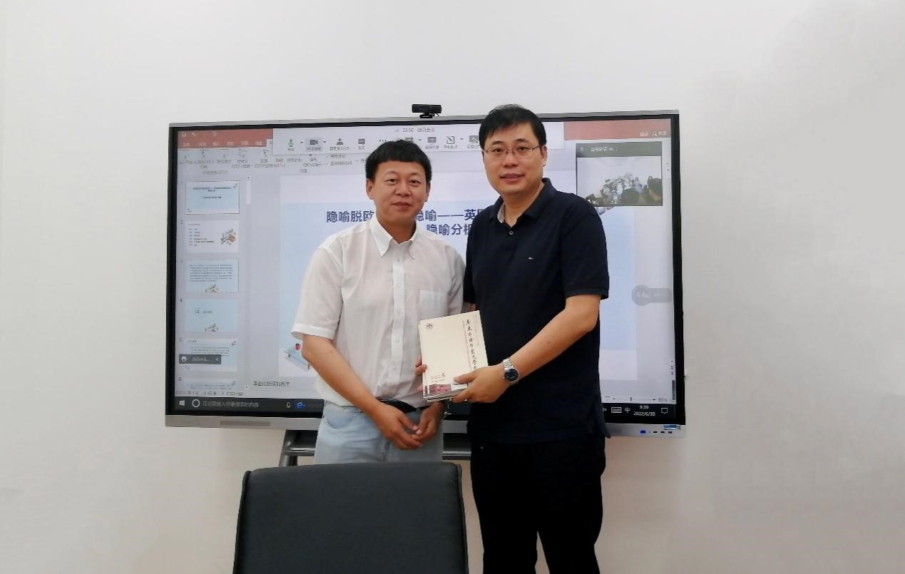 为全面推进《爱爱视频 一流研究生人才培养行动计划》工作任务落地落实,2022年6月30日,爱爱视频 邀请优秀校友代表,2004届毕业研究生,广东外语外贸大学云山杰出学者,《广东外语外贸大学学报》主编,博士生导师,博士后合作导师孙毅教授回校交流,并举行了线上线下相结合的题为“隐喻脱欧与脱欧隐喻——英国脱欧语篇的批评隐喻分析”的学术讲座。爱爱视频 院长孔杰、党委副书记马颖及线上线下50余名师生共同参加,讲座由...