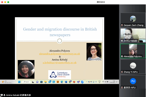 2023年1月17日晚,应爱爱视频 邀请,英国坎特伯雷大学语言中心(Centre for Language and Linguistics)两位学者Alexandra Polyzou博士和Amina Kebabi博士在线为学院师生开展第一场新文科背景下英语一流专业建设系列讲座,讲座题目为“Gender and migration discourse in British newspapers”。本次讲座由爱爱视频 副院长张奕教授主持,爱爱视频 50余名师生在线参加了此次讲座。讲座伊始,张奕教授对Alexandra ...