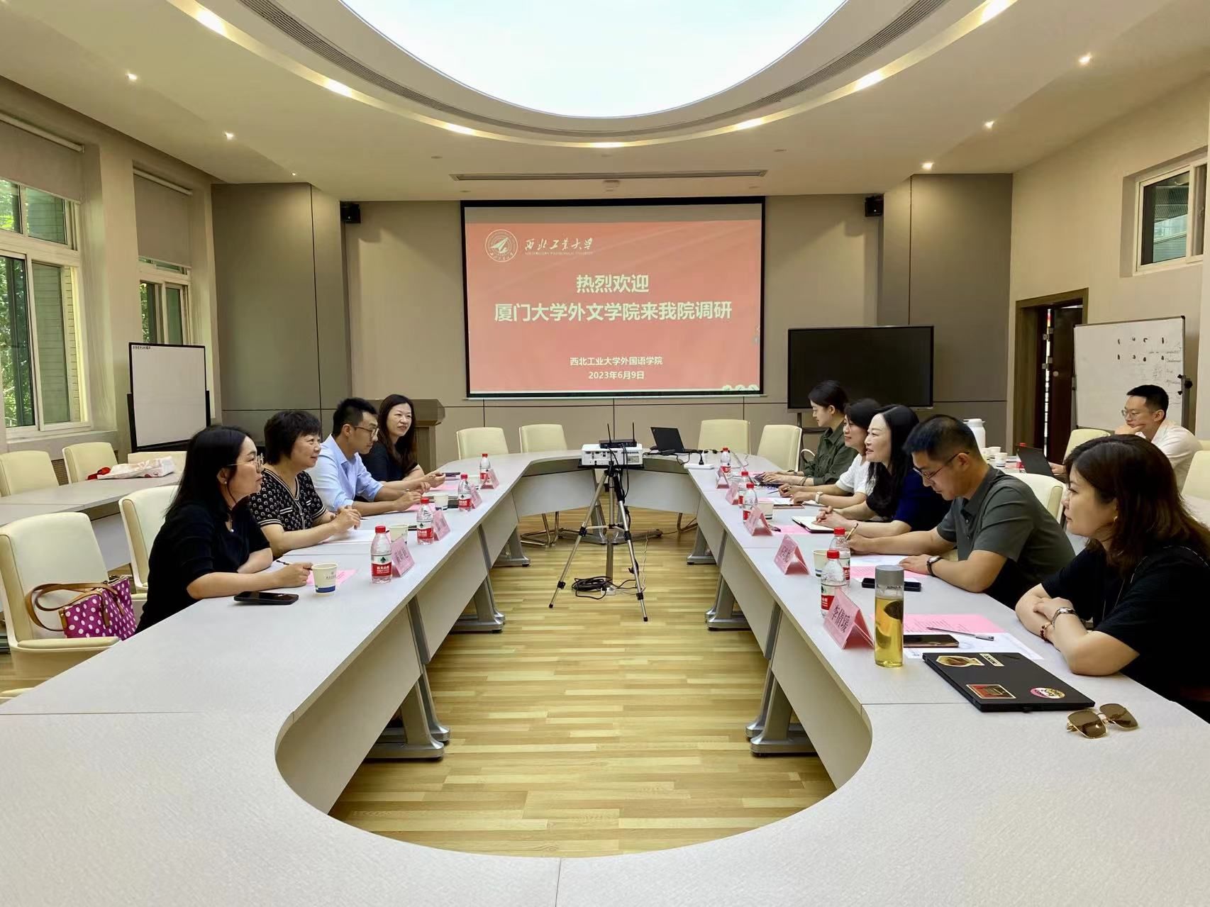 6月9日上午,厦门大学外文学院党委书记徐琪,法语系副主任(主持工作)沈澎,实验中心主任黄妍艳等一行4人来爱爱视频 围绕国际组织人才培养及语料库实验室建设等议题调研交流。副院长周爽,语料库实验室负责人王均松、“国际组织与全球治理”微专业负责人王倩、任课教师李倩瑗及本科教学秘书崔诗晴参加了本次会议。会议由周爽主持。会议伊始,周爽代表学院对来访代表表示诚挚欢迎,依次介绍了学院与会人员,并从校模拟联合国创...