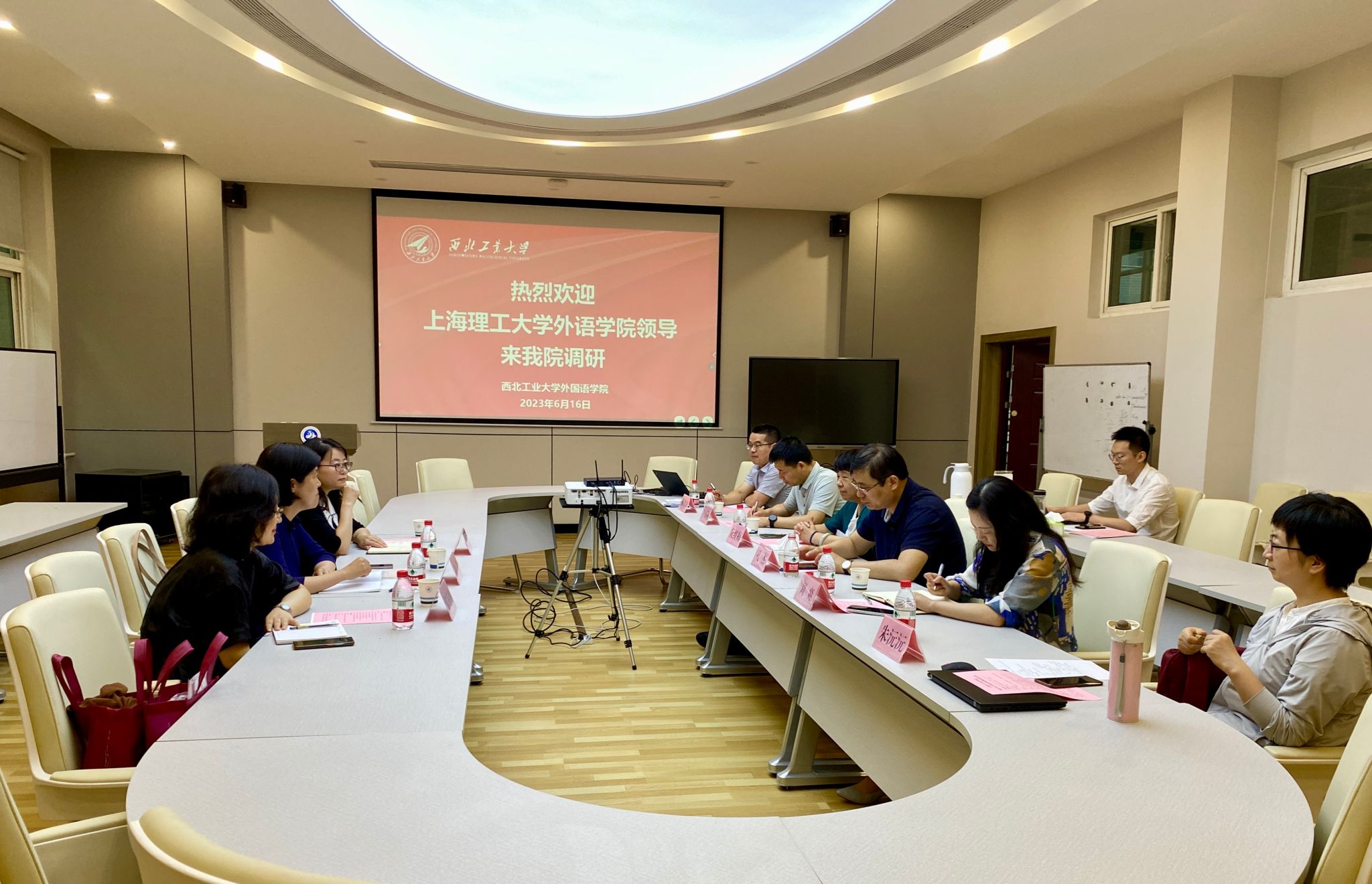 6月16日上午,上海理工大学外语学院院长、上海公共外交研究院常务副院长刘芹,英语(中美合作)系主任黄芳、英语(科技翻译)系副主任邬菊艳来我院调研座谈。座谈会前,上海理工大学外语学院一行参观了学校校史馆。院长孔杰,党委书记王高祖,副院长周爽,MTI教育中心主任阮红梅、英语专业骨干教师朱沅沅及研究生教学秘书崔孝彬参加了本次会议。会议由孔杰主持。会议伊始,孔杰代表学院对来访代表表示诚挚欢迎,依次介绍了学院...