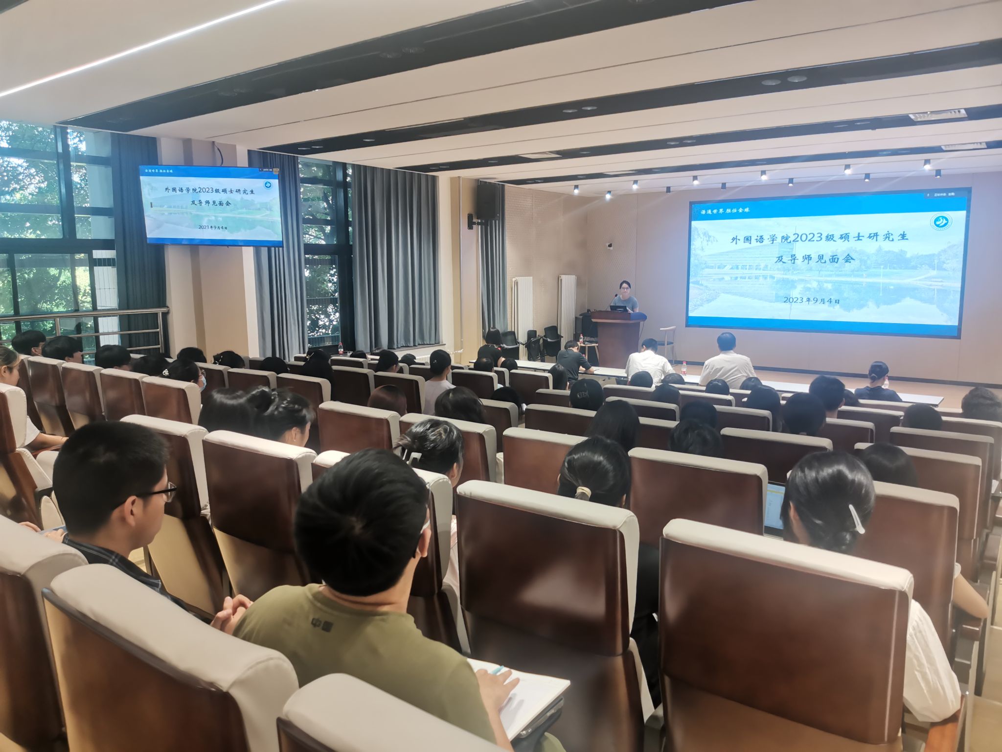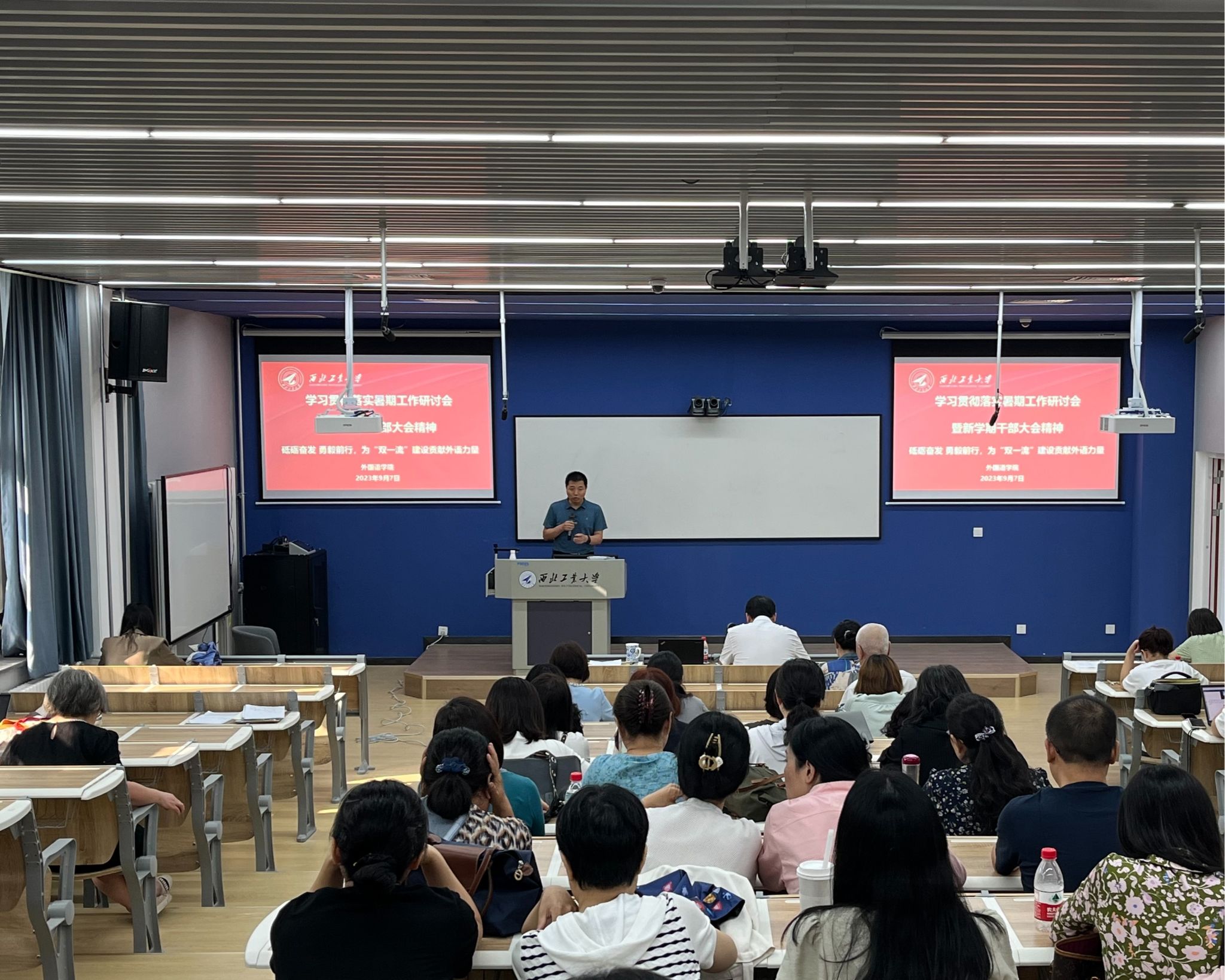 9月7日下午,爱爱视频 在长安校区教学东楼A座3楼306报告厅召开“学习贯彻落实暑期工作研讨会暨新学期干部大会精神砥砺奋发 勇毅前行,为“双一流”建设贡献外语力量”为主题的全院教职工大会,回顾总结学院上半年和暑期工作开展情况,传达学习暑期干部会议精神部署新学期重点工作任务。党委书记王高祖、院长孔杰、副院长周爽、党委副书记马颖、院长助理王晓丹和全体教职工出席会议。会议由王高祖主持。 会上,孔杰首先和全体教...