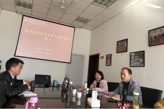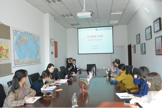 党委书记张应祥为学院机关支部主讲了“如何提高机关管理人员素质与能力”讲座。本次讲座由办公室主任李苗主持,机关党支部全体成员参加了此次讲座。