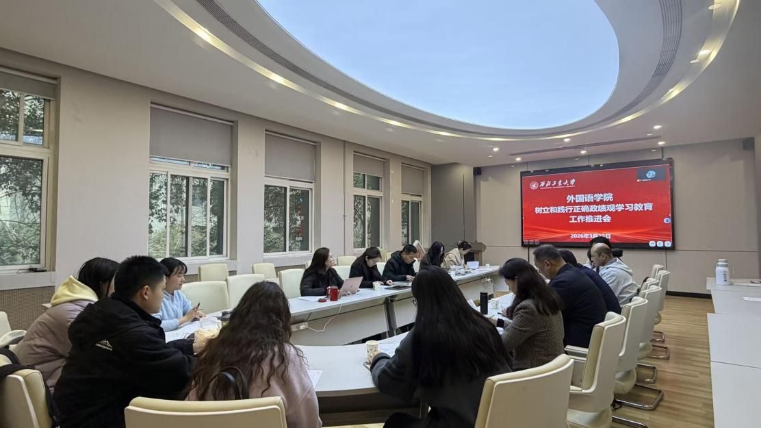 会议要求,学院党员领导干部和各党支部要把思想和行动统一到习近平总书记重要讲话和全国两会精神上来,将树立正确政绩观融入师风学风建设;要深学《习近平关于树立和践行政绩观论述摘编》,用好正反典型,树牢正确政绩观;要从严对照查摆,发扬民主、听取意见,强化党性锤炼和作风改进;要一体贯通整改,聚焦重点整治,压实责任推动,加强“当下改”和“长久立”,健全长效机制,主动接受师生监督,以实干实绩推进学院各项工作高水平高质量高标准发展,为学校“一十百千”核心指标达成贡献力量。(文/王开薇;审稿/王高祖)