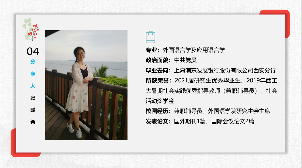 卢梅则是分享了她制作简历的经验,提倡在基础简历之上针对不同的岗位需求做针对性的修改。同时,在信息互联时代,善用媒体可针对岗位和公司业务进行细致的了解。