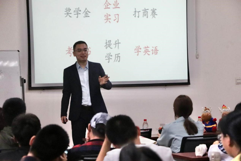 接着他循序渐进,通过结合实际举例子的方式指出不仅仅要有理想,更要明白我们怎样做才能离自己的理想更近;要学会由内至外的了解一个企业,同时还需要在大学期间为自己塑造一份打动人的优秀简历。最后他着重强调了英语学习对未来职业的重要性,希望同学们学好本专业,把自己培养成符合未来职场要求的高精尖人才。