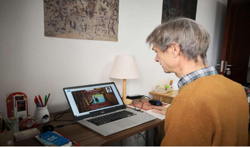 Michael从未使用过“雨课堂”中文教学软件、无合适的慕课课程且唯一的电脑与远程授课软件不兼容。在德语教研室主任邓涛的帮助下对其进行一对一指导,并且针对外教电脑不兼容的问题,努力克服自身困难为其筹措到一台可兼容软件的电脑并更新系统交付其使用。经与外教反复沟通,决定使用其相对熟悉的英文版“瞩目会议”,并同步建立了不同课程的微信群,最终保证了课程的顺利运行,上课效果反应热烈。