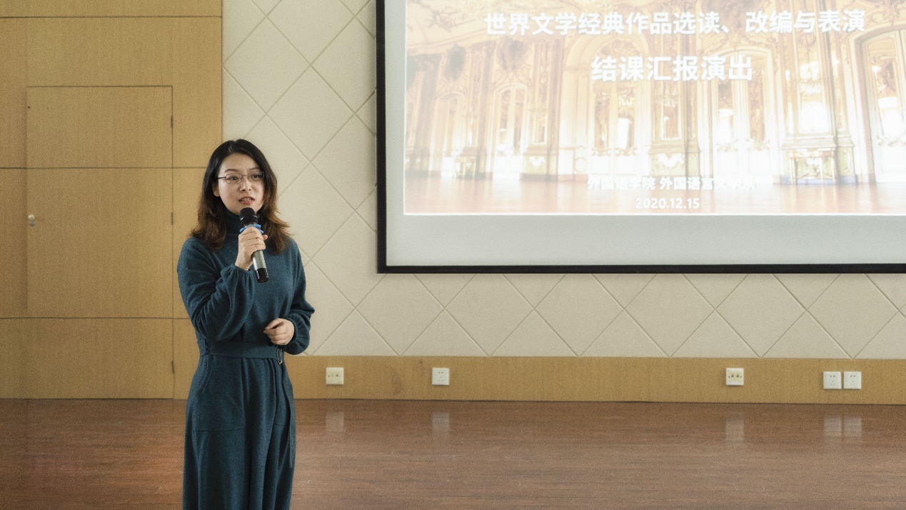 开设,六位外国文学方向不同语种的老师共同合作、倾情打造的面向全校本科生开设的学科专业方向课程和人文素养类通识课程,旨在为学校“双一流”建设、“新文科”“新工科”背景下学校领军人才的培养提供课程支撑和智力支持,是践行课程思政的又一次创新尝试。课程主要包括理论讲解、国内知名影视专家讲座、剧本改写、戏剧排演和公演五部分构成。在剧本改编和戏剧排练环节,除了每周一对一的辅导之外,教学团队还组织了两次集体戏剧排练,并邀请了编剧和表演专业的专家、西北大学高字民教授给学生进行指导。同学们认为这是一门兼具文学性、哲思性、开创性的课程,在工科氛围浓郁的工大“生根发芽”,令人惊喜;也有学生评价说“学习世界经典文学作品,更好的认识了自己、人生和社会”。