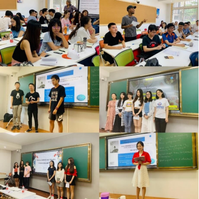 、教育实验学院、电子信息学院、计算机学院、航海学院、自动化学院与马克思主义学院的7 个学院的35 名本科生、硕士生以及国际留学生。课程因其以学生为中心的理念和探究式教学法的设计,受到学生的广泛好评。同学们通过小组讨论、课题汇报与短文写作等活动,深入了解不同文化与语言的特征,从而增强在全球化背景下的跨文化沟通与交际能力,提升文化自信与核心竞争力。