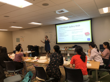此次暑期项目由蒙大拿大学教育学院(College of Education)的教育领导力系(Department of Educational Leadership)主办,内容主要围绕如何进一步提高高校外语教师的教学管理能力、教学组织与活动设计能力、科学研究能力、教学评估及跨文化交流能力等方面展开,介绍世界当前最为前沿的教学基础理论与教学研究方法,传授语言教学课堂常见、常用的教学手段与教学活动组织方式,包括团队精神建设、师生共建信任、科技与互联网教学、小组互动活动等,并以深入浅出的具体案例、生动的课堂展示、新颖的科技手段与教具等方式激发参与培训教师们展开深入探讨,给大家留下深刻的印象。