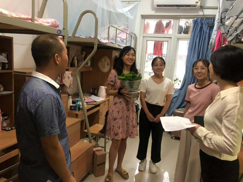26日下午4时,院党委副书记高敏、辅导员赵青及研究生会主席团成员前往宿舍楼慰问2019级研究生新生,带去学院的关怀与问候。