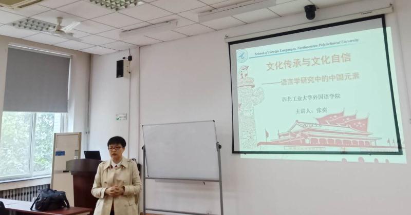 5月8日中午,学院党委委员、副院长张奕在学院楼204为34名入党积极分子讲了题为“文化传承与文化自信——语言学研究中的中国元素”的党课。