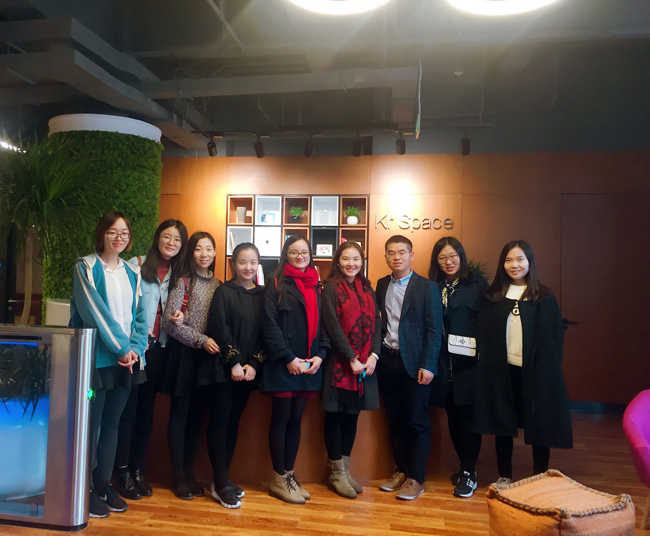 10月20日下午,实践队前往北京中关村创业大街参观。随后,前往36氪空间参观。36氪是中国主流、权威和影响力最大的新商业媒体,围绕创业服务,陆续推出了氪空间、创投业务,为创业企业提供融资对接、办公空间等服务,已成为中国最大的“双创”服务平台。创客们对创业的专注与执着深深震撼了实践队员。参观结束后,实践队与36氪有关人员就建立实习基地的相关事宜进行了洽谈,重点探讨了双方在创新创业教育、学生实习等方面合作的可行性。