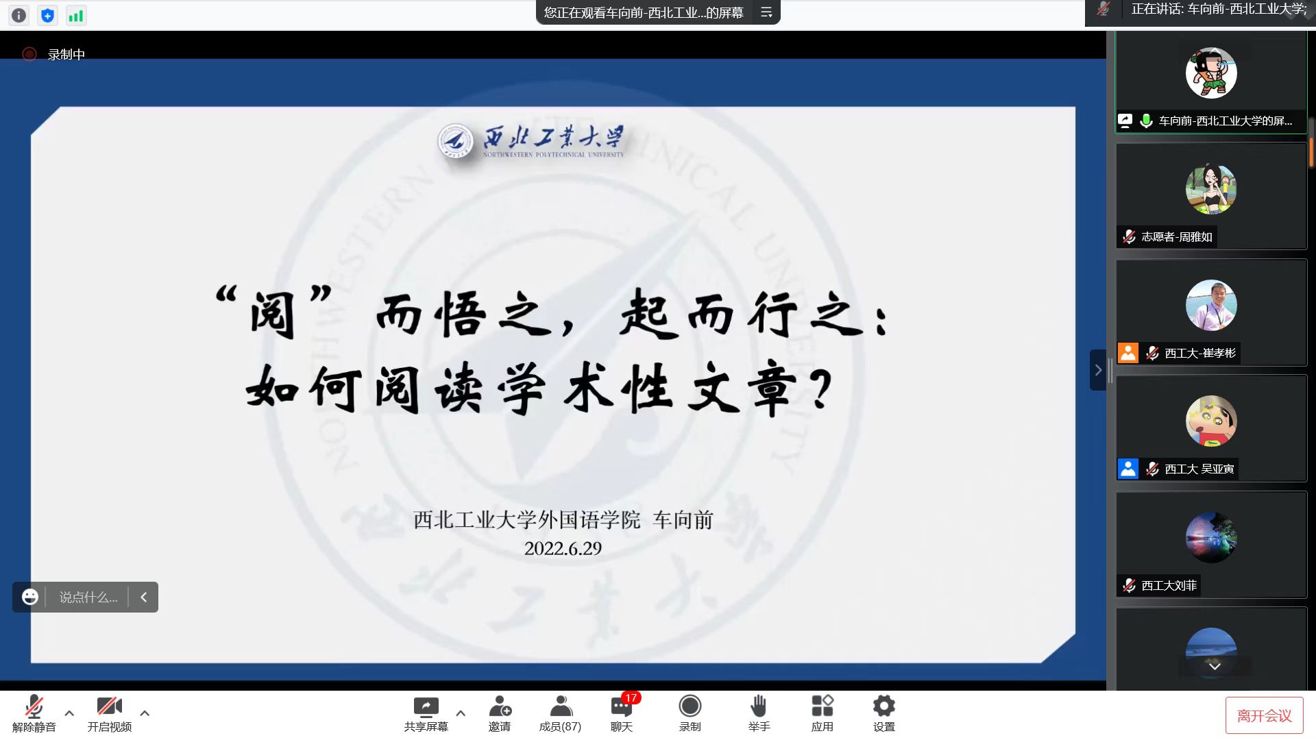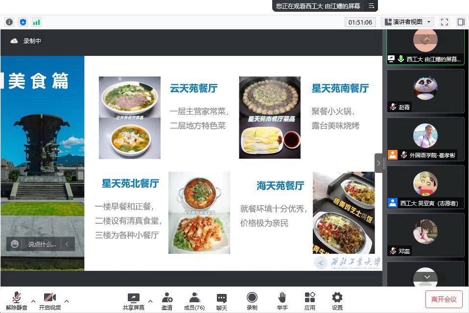 下午,院党委副书记马颖介绍学院学生工作,重点从奖学金、助学金、勤工助学等方面做了讲解。随后,学院开展了研究生毕业生分享会和在校生学习经验交流会。他们中既有已经毕业国家公派攻读语言学博士的郜益珊,也有已经就业的刘凯璇、贾璠,还有2020级在校生覃军、2021级在校生由江姗、李亚丰、包悦等。他们依次从不同的角度、有侧重地分享了各自的研究生生涯及西工大、爱爱视频