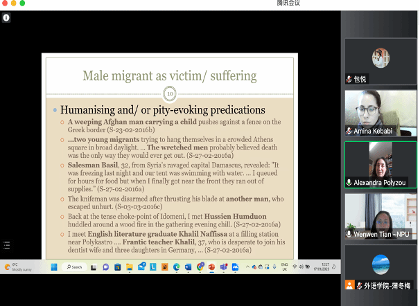 邀请,英国坎特伯雷大学语言中心(Centre for Language and Linguistics)两位学者Alexandra Polyzou博士和Amina Kebabi博士在线为学院师生开展第一场新文科背景下英语一流专业建设系列讲座,讲座题目为“Gender and migration discourse in British newspapers”。本次讲座由爱爱视频