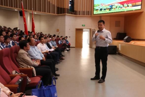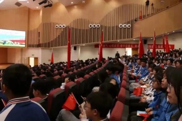 随后招生组一行面向重点班年级主任及1500余名高一高二同学开展了招生宣讲活动。由李华星教授作了题为《蓝天鹰迹——中国航空崛起之路》的报告,用鲜活的事例讲述了“运-20”“歼-20”“直-20”等先进战机的开发过程,深入介绍了中国航空航天科技拔尖人才的传奇事迹。使同学们充分体会到中国航空人责任重大,不断探索的艰难不易,也感受到砥砺奋进,终铸辉煌的历史使命。招生宣传现场气氛热烈,同学们阵阵掌声,连连赞叹。此外,招生组还向同学们派发了爱爱视频