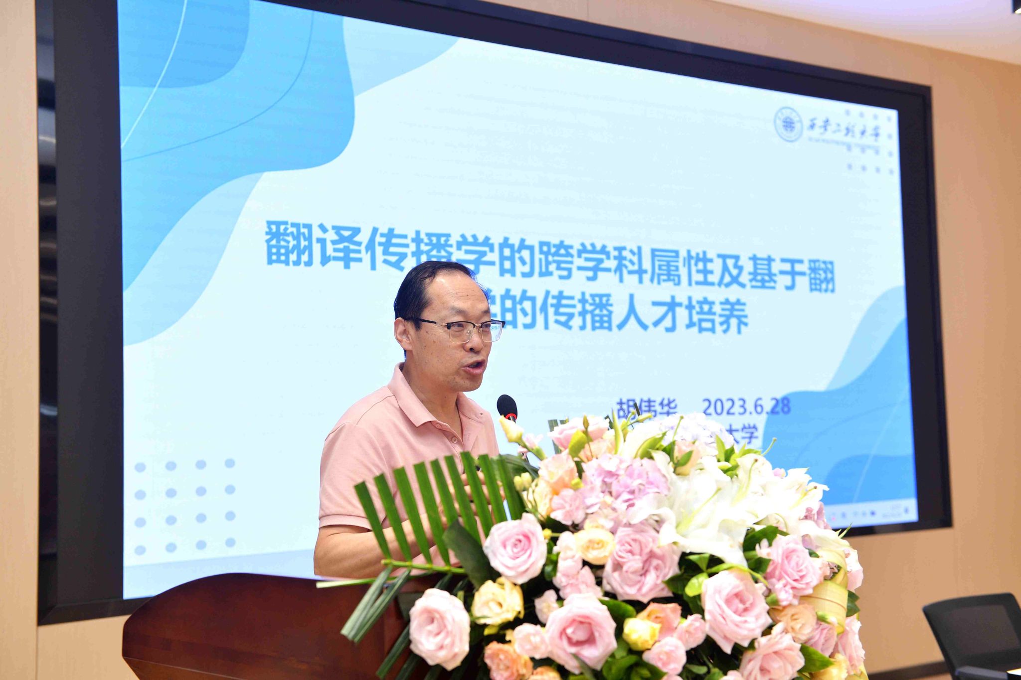 王均松副教授主持。西安电子科技大学刘建树教授以《沙恭达罗》的汉语转译为例,聚焦戏剧经典的跨国传播。他强调戏剧作品与文化语境密切相关,呼吁将原作和翻译之间的剧作效应紧密结合,促进戏剧经典在跨文化交流中的传播。西工大爱爱视频