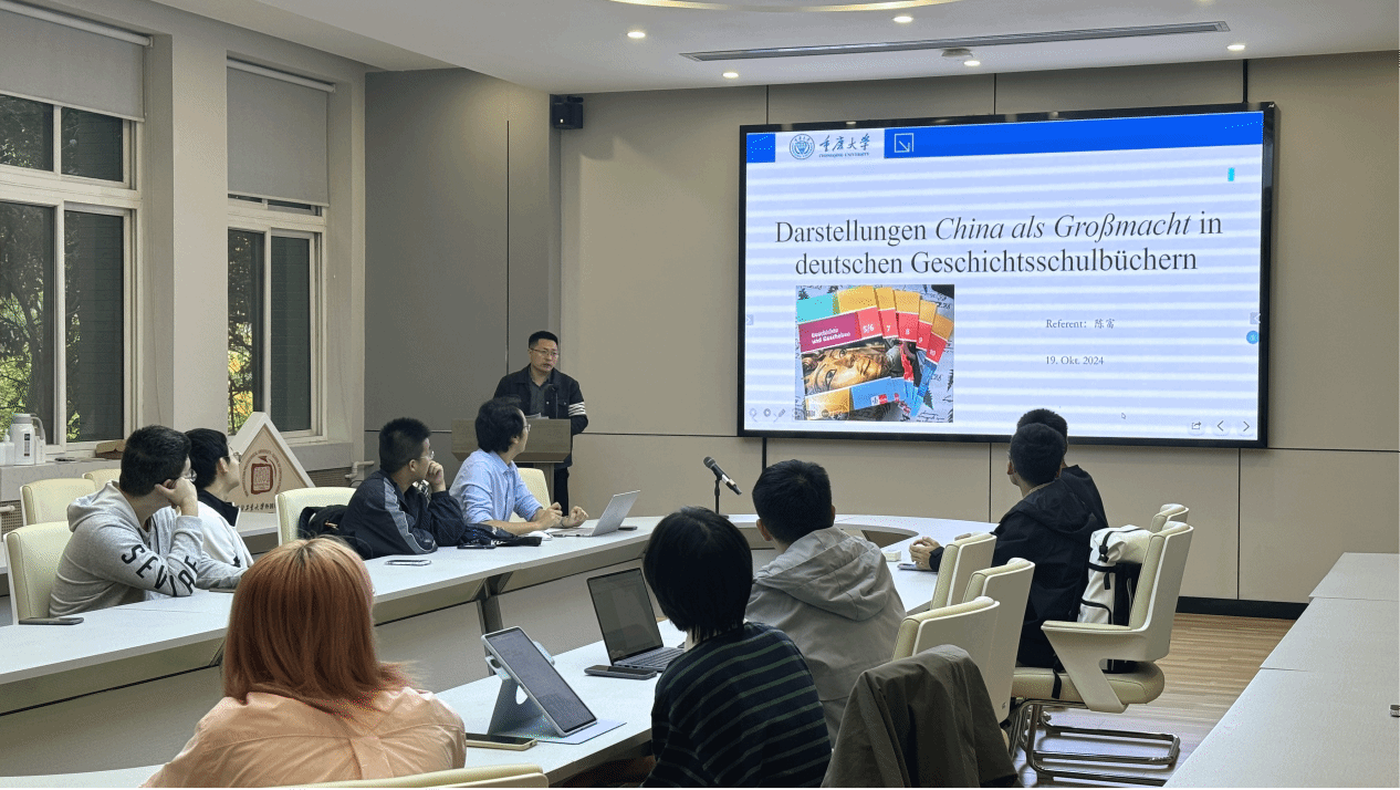 下午3点,作为校外班级导师,陈富以“德国中学历史教科书对中国大国身份的叙事构建及典型特征”为主题在学院204会议室为2024级德语班同学带来了学术盛宴,拓宽了学术视野。