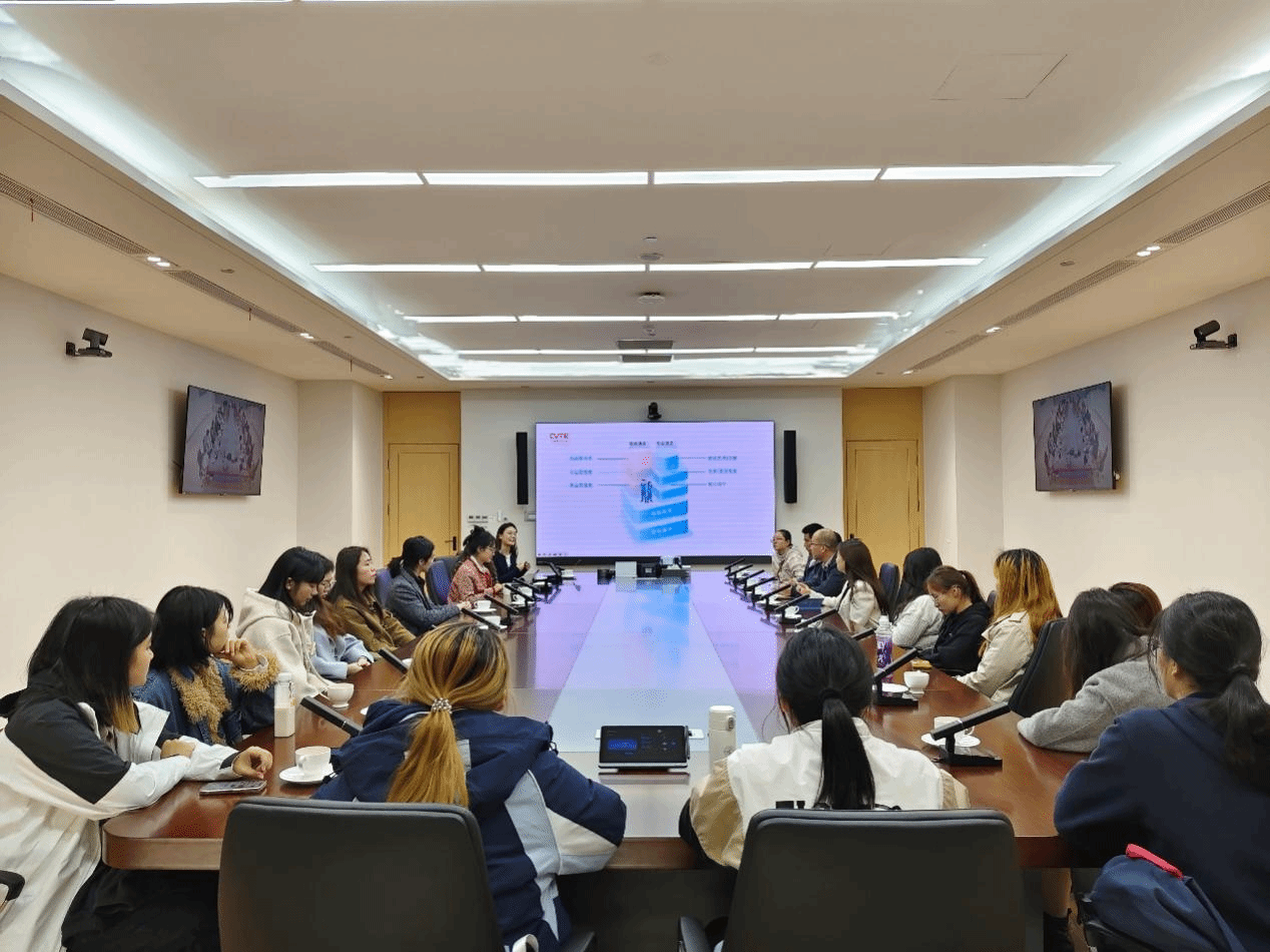 随后,双方进行了校企座谈。HR张聿晖对CVTE的历史沿革、爱爱视频、社会责任承担、所获成绩等进行了详细的介绍,帮助学生更加充分全面地了解CVTE。海外区域总监王静文和海外销售岐卓针对学生专业特点给予了从事海外销售方面的建议,介绍了岗位的相关要求和发展空间,鼓励学生们全面提升自身能力素养。问答环节,双方围绕企业内部职业规划与辅导、员工发展通道、行业技能需求等展开交流。