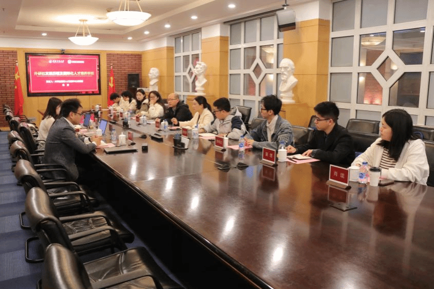 12日上午,学院一行前往外语教学与研究出版社(以下简称“外研社”)参访。外研社国际人才发展中心总经理冯涛、人力资源部高级人力资源经理倪阳洁、国际人才发展中心市场部运营经理朱丹、高等营销中心西北营销大区高级市场经理袁硕出席座谈会。