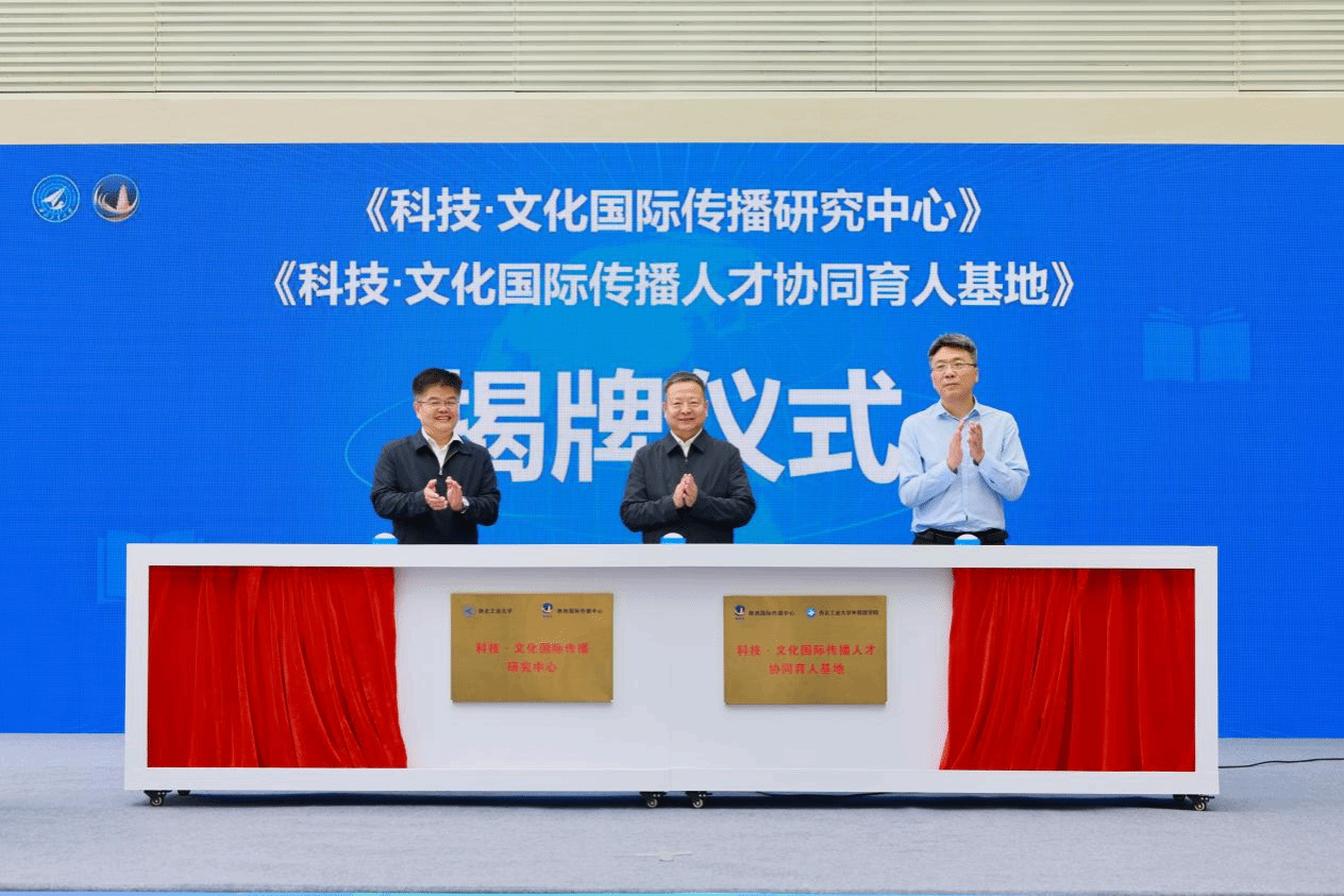 共建“科技·文化国际传播人才协同育人基地”合作协议》,武勇超、杨晓、邱陆共同为“科技·文化国际传播研究中心”和“科技·文化国际传播人才协同育人基地”揭牌。