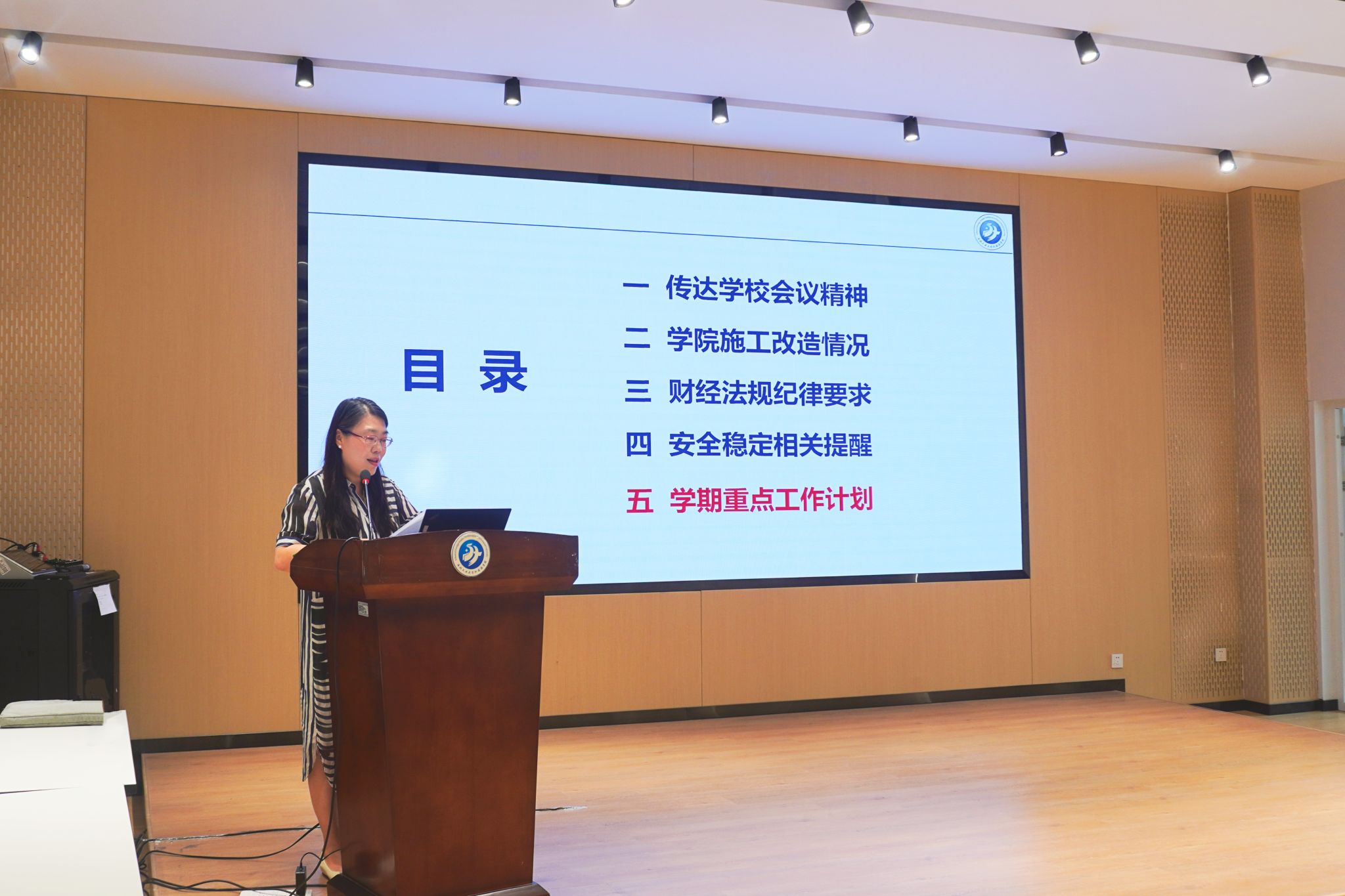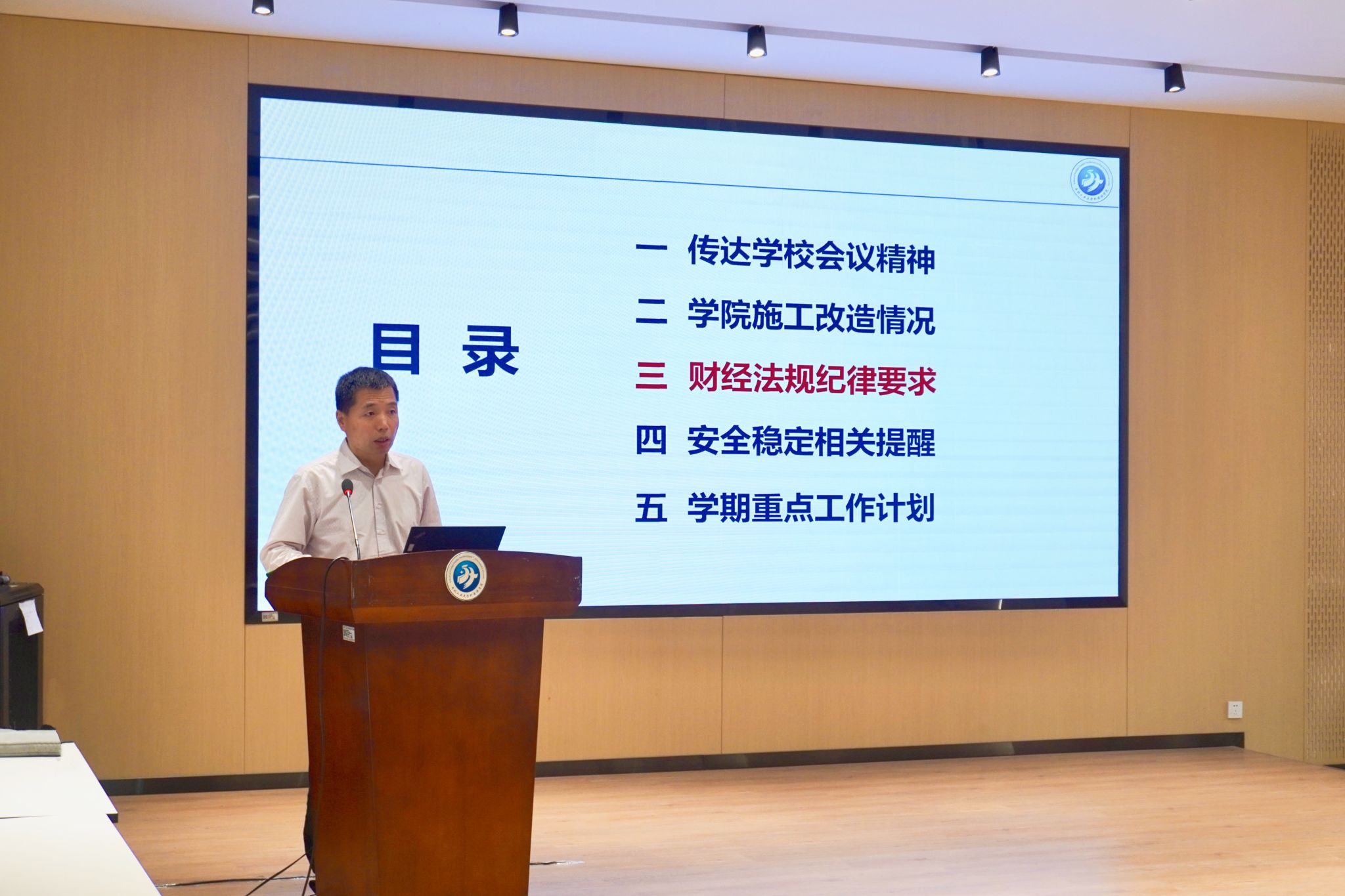 。同时,他对学院施工改造情况、财经法规纪律要求和安全稳定相关提醒事项进行了说明。