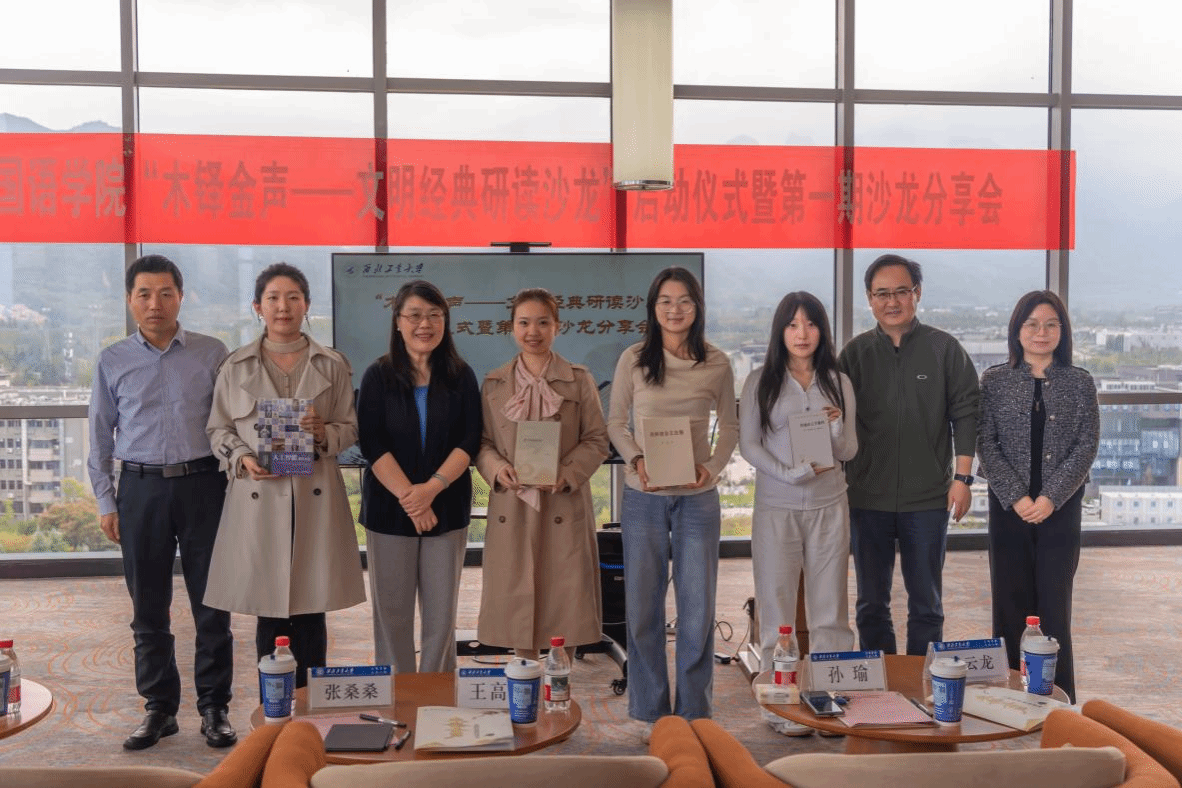 孙瑜首先对“木铎金声”的深厚意涵做了解释。她指出,“木铎”自古便是用以宣政布教、振聋发聩的响器,象征着智慧与教化;“金声”则喻指钟鼎般清越响亮、能传播久远的声音。沙龙活动以此为名,意在期望外院学子能够在导读老师的引领下,深入文明经典的堂奥,让先贤的智慧在当代焕发新的回响。孙瑜鼓励“文科学生要做‘读书人’”,并对同学们提出了三点殷切期望:一是精进专业,阅读经典是外语人治学的根基,应广泛阅读,筑牢学术根基;二是启迪思考,不仅要“读”书,更要“研”书,努力将前人的智慧转化为对自身、对时代的深刻洞察与启迪,练就独立的批判性思维能力;三是开阔见识,通过博览群书,跨越时空与文明对话,涵养广阔的文化视野与深厚的人文情怀。